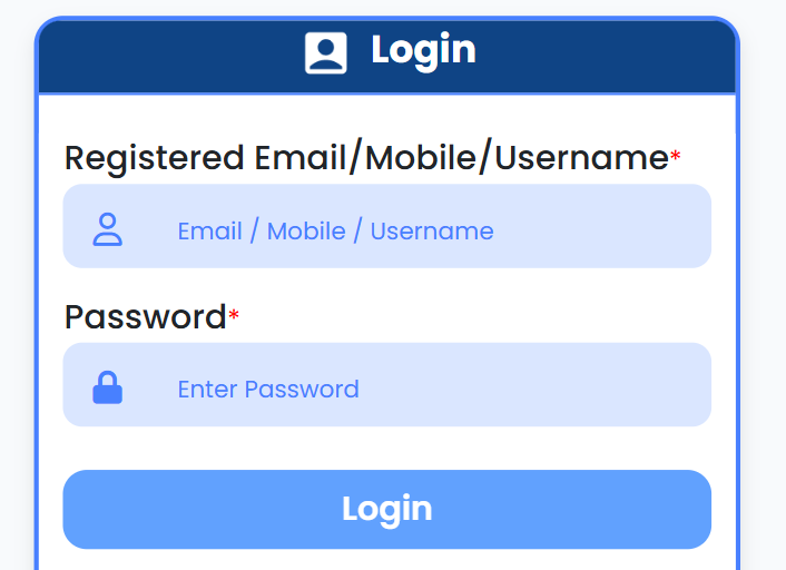 - अपने Username और Password से लॉगिन करें (आवेदन के समय बनाया गया था)।