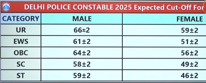 DELHI Police Constable CUT OFF 2026 (Expected)