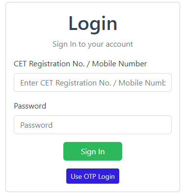 - कैंडिडेट लॉगिन पेज खुलेगा। यहां अपना Registration Number या Mobile Number और पासवर्ड डालें (जो आपने आवेदन के समय बनाया था)।