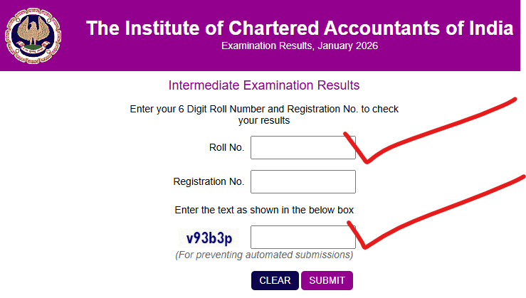 उत्तर: सबसे पहले अपना रोल और रजिस्ट्रेशन नंबर दोबारा चेक करें icai.org या caresults.icai.org पर जाकर।