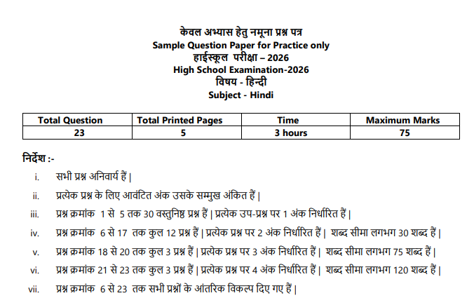 लेकिन पास होना जरूरी है अगर आप इसमें फेल हो जाते हैं तो अन्य विषय में पास होने पर भी आपको फेल किया जा सकता है इसलिए ध्यान दें और हिंदी विषय को गंभीरता से ले और नीचे दिए गए मॉडल पेपर प्रीवियस ईयर क्वेश्चन पेपर पीडीएफ डाउनलोड करके अपने आप को मजबूत करें ताकि हिंदी का पेपर अच्छा हो सके।