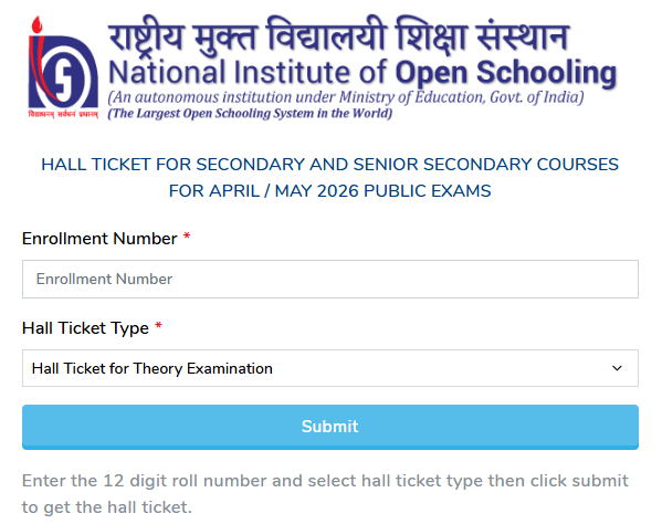 डाउनलोड करें NIOS अप्रैल थ्योरी एडमिट कार्ड 2026: NIOS Admit Card April Download 2026