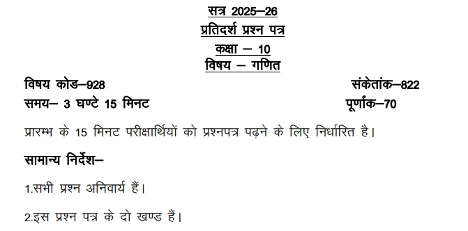 | UP Board 10th Maths Model Paper 2026 | Pdf Download |