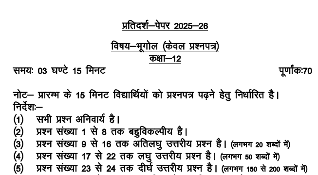 | 26 फरवरी UP Board Geography 2026 Class 12 Model Paper | Click Here | Syllabus ![]() |