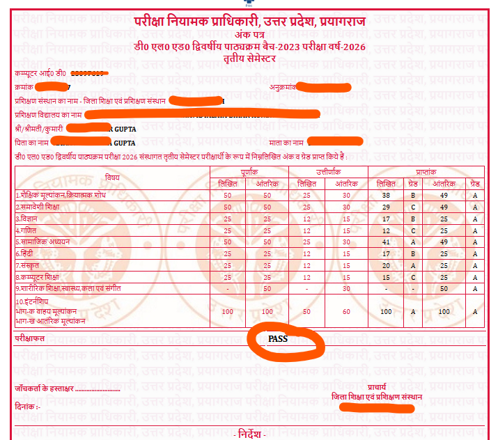 UP D.El.Ed 1/ 3rd Sem result जारी