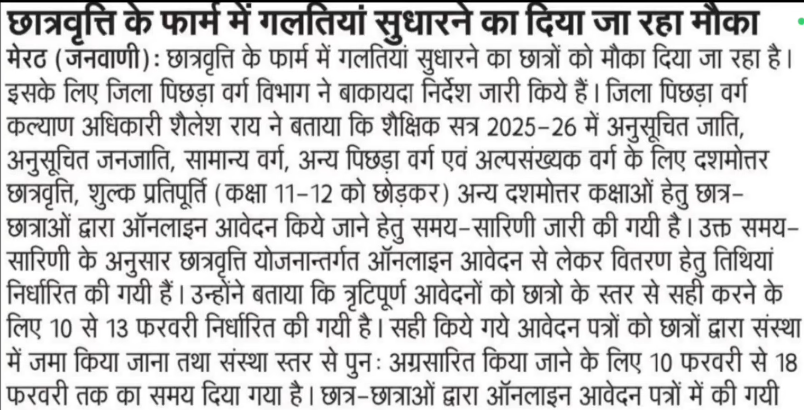 1. प्रश्न: UP Scholarship Correction 2026 date Badhegi?