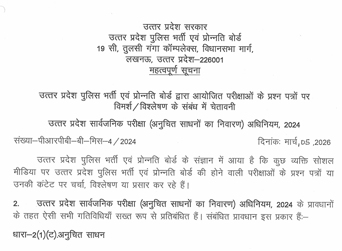 Conducting BodyUttar Pradesh Police Recruitment and Promotion Board (UPPRPB)