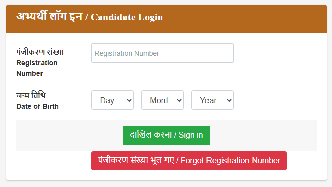 4. लिंक पर क्लिक करने के बाद लॉगिन पेज खुलेगा। यहां अपना रजिस्ट्रेशन नंबर (या OTR नंबर) और जन्म तिथि (Date of Birth) दर्ज करें।