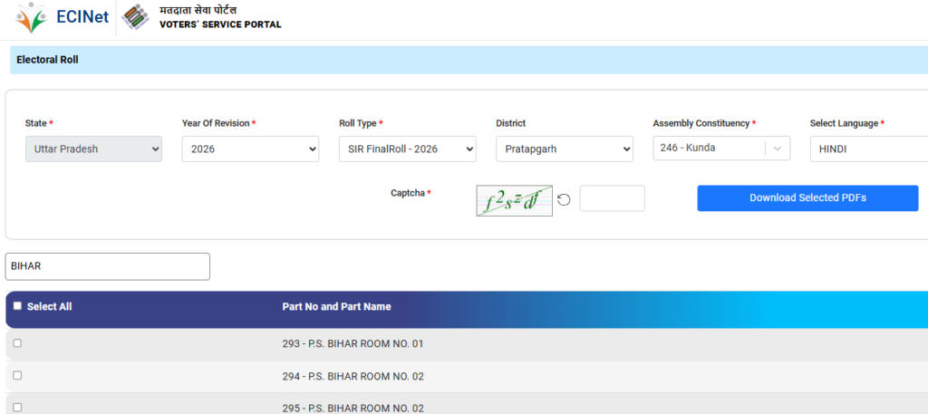 3. Year या Roll Type में SIR Final Roll 2026 या Final Roll 2026 सिलेक्ट करें।