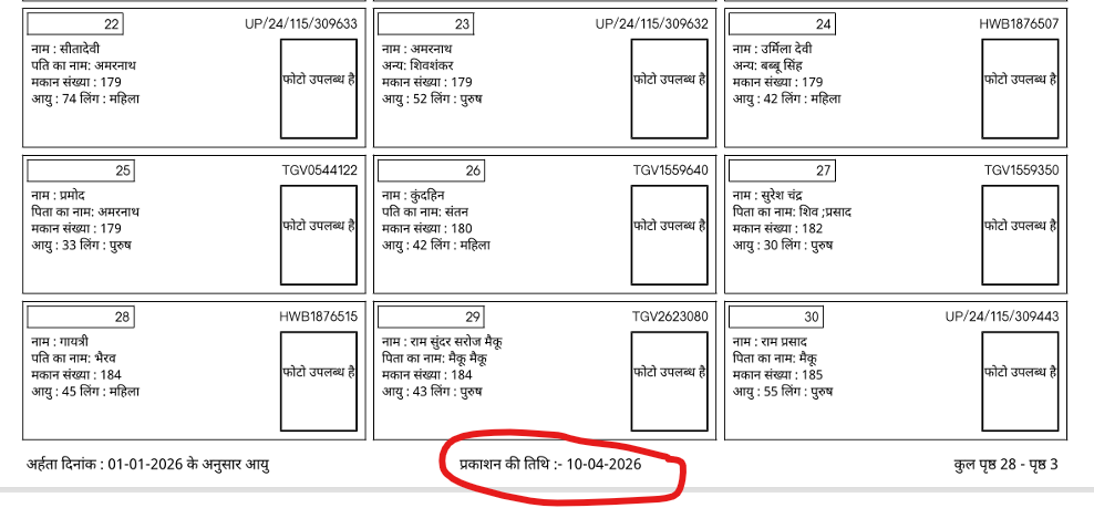 उत्तर प्रदेश के सभी मतदाता जो पुराने थे और जो नए थे और जिन्होंने पहली बार फॉर्म 6 भरा था उनका नाम जुड़ गया है लेकिन आपको लिस्ट और एपिक संख्या जरूर याद करके रखना होगा और इसे आप डाउनलोड भी कर सकते हैं इसकी पूरी जानकारी यहां पर दी जा रही है क्योंकि नई लिस्ट 10 अप्रैल 2026 को जारी कर दी गई है उत्तर प्रदेश में विधानसभा चुनाव 2027 में होने वाला है जिसको देखते हुए पूरी तैयारी चल रही है।